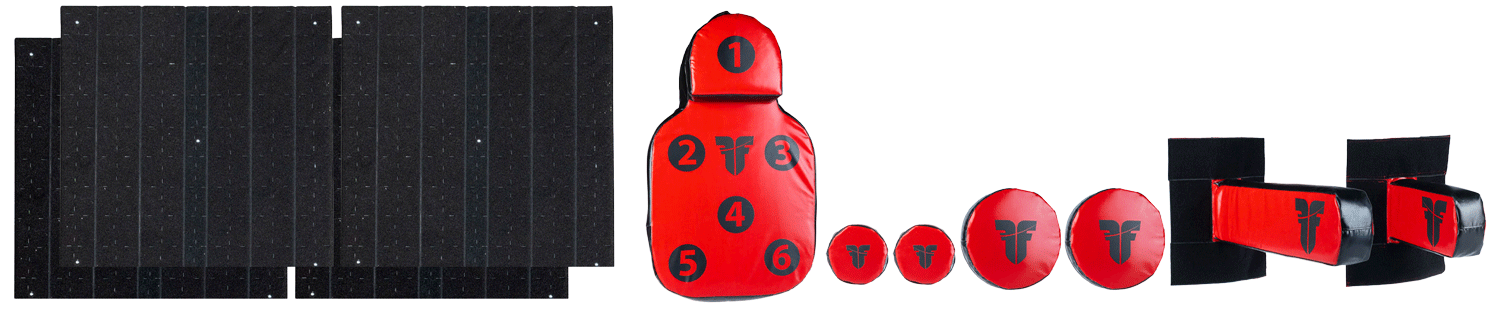 When you have the boards attached to the wall you can place the shields and mitts wherever you want and make a good placement for your technique or combination. The mitts and shields are made of durable and washable material and equipped with velcro all over the back side which can be very easily attached to the Power Wall boards.