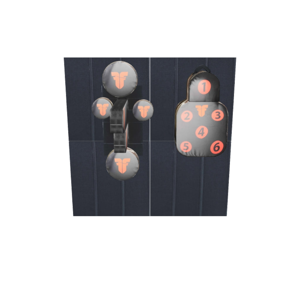 Use the mitts and shield to make your training enjoyable. We recommend the combination of small round targets for reaction training.